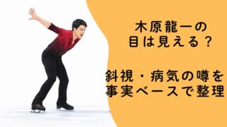 フィギュアスケートペア「りくりゅう」として活躍する木原龍一選手。最近、「木原龍一 目」「木原龍一 目 斜視」「木原龍一 目 見えてる」といった検索が急増しています。引用画像:スポーツ報知テレビ中継やインタビュー映像を見て、「目は見えているの...