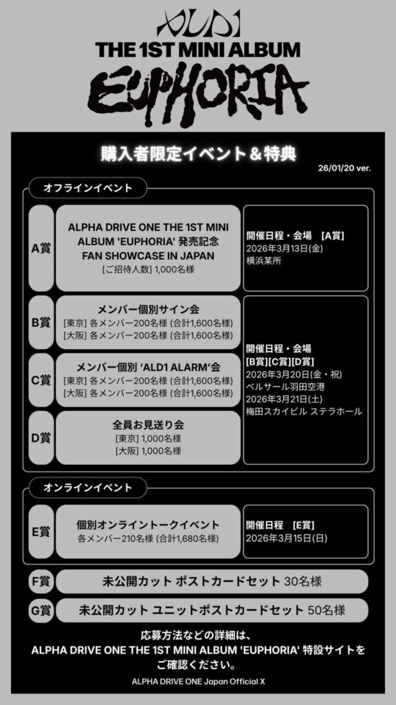 - 2026年3月13日(金):『EUPHORIA』発売記念 FAN SHOWCASE IN JAPAN