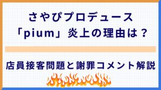 トレンド さやぴプロデュース「pium」炎上の理由は?店員接客問題と謝罪コメント解説 インフルエンサー「さやぴ」ことさやかさんが手がけるブランド pium(ピウム) が炎上しています。接客態度をめぐる不満に加え、公式XやHPでの投稿が逆効果となり、批判と擁護が交錯する事態となりました。ここでは 炎上の理由・SNSでのリアルな... 2025.09.30 トレンド未分類