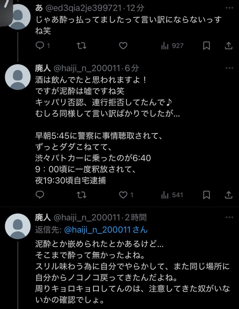 逮捕当日、現場で職務質問を受けているとされる写真を投稿したユーザーが注目を集め、その後アカウントが削除されたケースが報告されています。