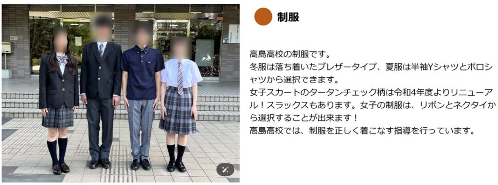 • 制服の形ブレザー型で、高島高校の制服紹介と整合性があるように見えること