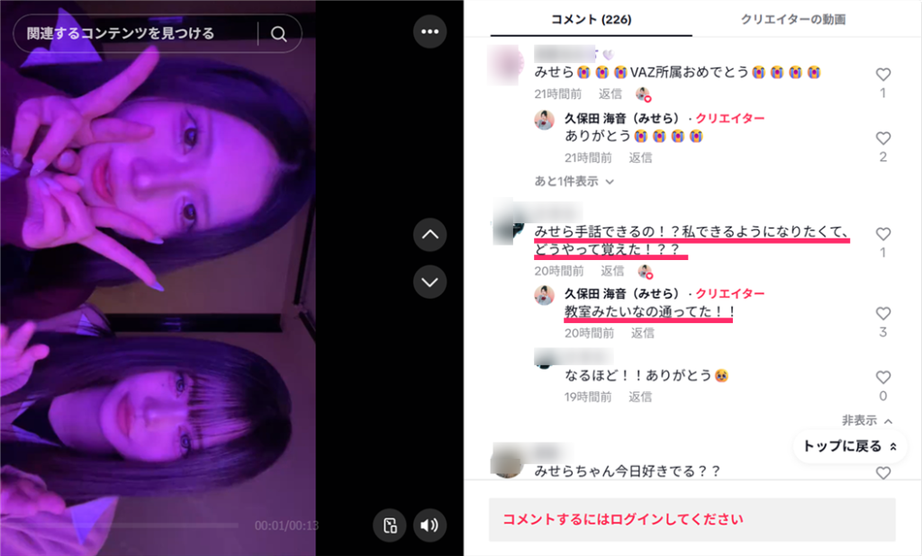 また本人コメントでは、手話について「教室みたいなのに通っていた」と返信しており、特技が実生活に根ざしたものであることもうかがえます。