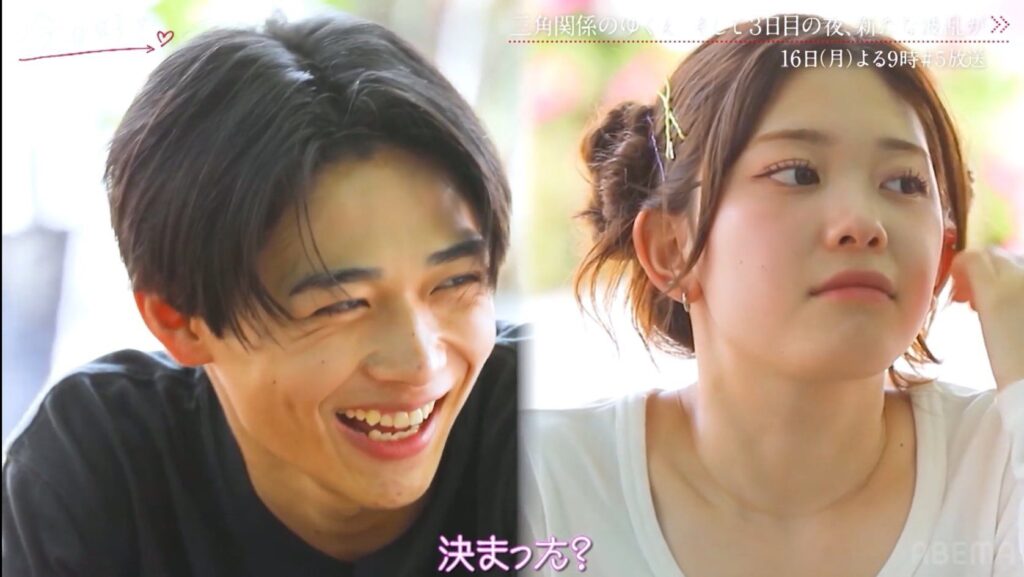 第2話までは「誰が誰を気になっているか」を探る段階でしたが、第3話では“気になる”から“選ぶ”へ進んだペアが出てきました。