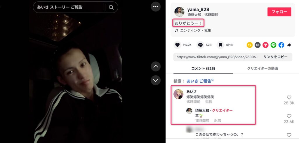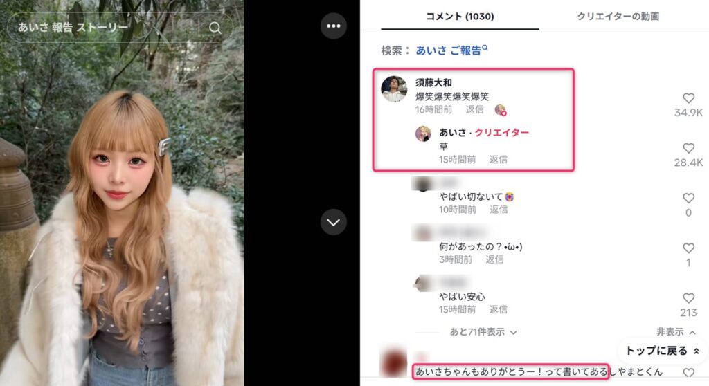 Instagramストーリーで破局を報告する直前、須藤大和(やまと)さんと細川愛沙(あいさ)さんは、 TikTokのコメント欄で軽いやり取りをしていたことが確認されています。