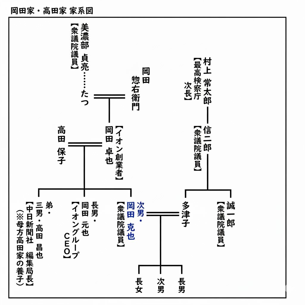 ここでは、ネット上で語られているイオンや岡田家、高田姓との関係について、背景を整理するための家系図を確認します。