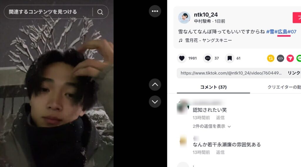 一方で、SNSでは広島での撮影と思われる投稿が見られるため、広島にゆかりがあるのではと注目されています。