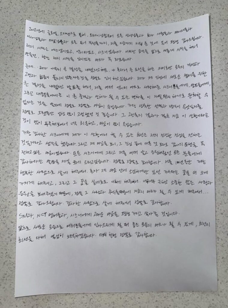 確認されていることは、SMが契約終了とNCT活動終了を発表したこと、理由として今後の活動方向についての協議を挙げていること、そして本人が新しい夢や音楽への思いを語っていることです。