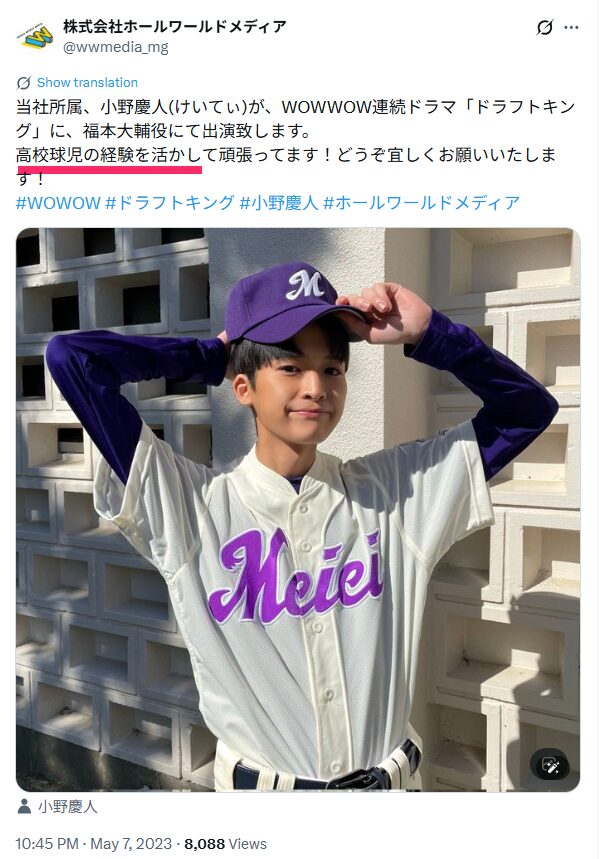 高校1年生の時点でも野球部に所属していた