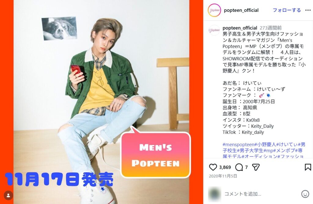 Men’s Popteen専属モデルとしての活動歴