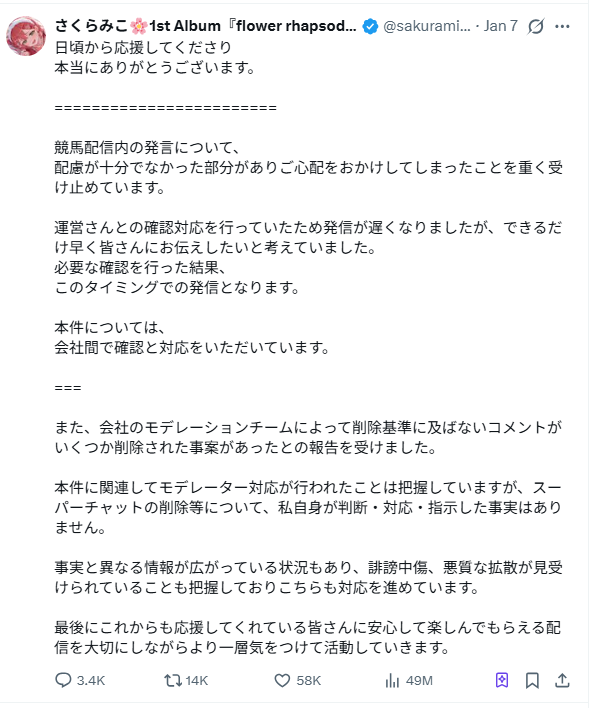 さくらみこ 炎上は何があった 競馬配信とグリーンチャンネル問題を時系列で整理