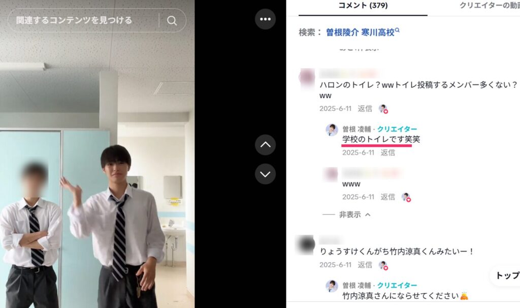一方で、TikTokなどのSNSでは制服姿や校内とみられる動画が投稿されています。