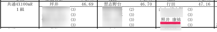 令和4年度「船橋市春季市民陸上競技大会 予選記録一覧表(中学男子)」に、照井康祐さんの名前が掲載されています。