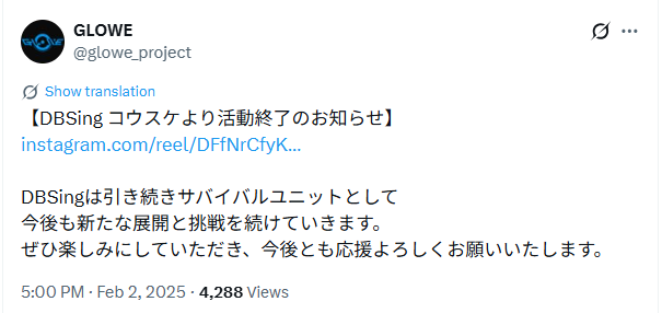 - 2025年2月2日には、公式から活動終了のお知らせが発信されました。